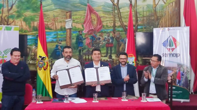 El alcalde de Tarija, Johnny Torres Terzo y el Ministro de Medio Ambiente y Agua, Álvaro Ruiz, firmaron dos acuerdos gubernamentales, el primero para implementar el alcantarillado sanitario para barrios de la ciudad y el segundo es para la protección a la Reserva Biológica Cordillera de Sama