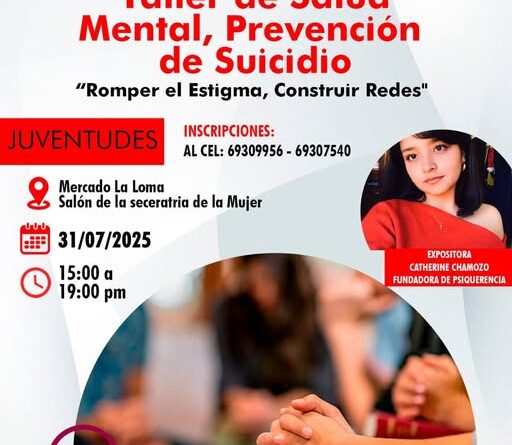 La Alcaldía de Tarija, a través de la Secretaría de la Mujer, Familia y Poblaciones Vulnerables, junto a la Oficina de Juventudes, anunció la realización del Taller de Salud Mental y Prevención del Suicidio, una actividad dirigida especialmente a jóvenes del municipio, como parte de su compromiso con el bienestar emocional y psicológico de la población.