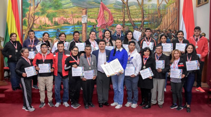 El Gobierno Autónomo Municipal de Tarija (GAMT), en un emotivo acto realizado en el salón de espejos de la Alcaldía, brindó un reconocimiento especial a los atletas máster que representaron a la región en el campeonato nacional e internacional “Integración Latinoamericana”, llevado a cabo en la ciudad de Potosí.