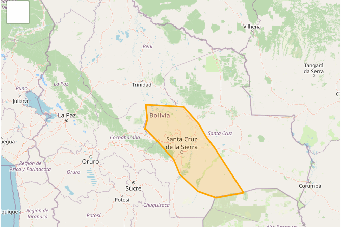 La alerta está vigente en las provincias cruceñas Ibáñez, Warnes, Ichilo, Sara, Santiesteban, noreste de Cordillera, oeste de Chiquitos, sur de Guarayos y Ñuflo de Chávez.