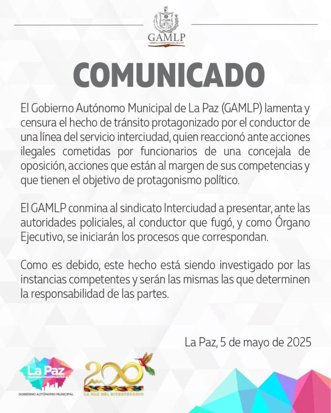 En horas de la noche del mismo día, la Alcaldía de La Paz difundió un comunicado, que ahora es cuestionado, principalmente, por algunos usuarios de las redes sociales.