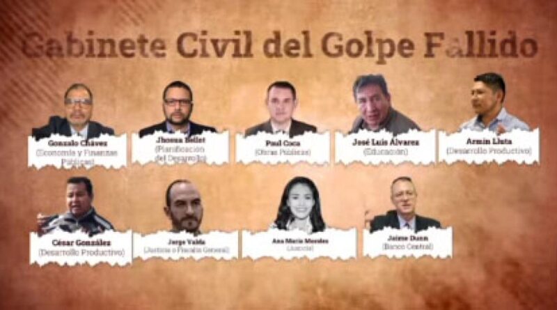 Según el video gubernamental, Gonzalo Chávez supuestamente iba a ser ministro de Economía; Jhosua Bellot de Planificación del Desarrollo; Paul Coca de Obras Públicas; José Luis Álvarez de Educación; Armin Lluta o César Gonzales de Desarrollo Productivo; Ana María Morales de Justicia y Jorge Valda de Justicia o Fiscal General.