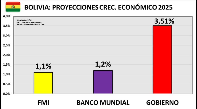 Hace poco el Fondo Monetario Internacional (FMI) proyectó que BOLIVIA tendrá un crecimiento económico para este 2025 de apenas un 1,1%, el más bajo de toda Latinoamérica y el Caribe, y que para el 2026 seria de apenas un 0,9%. El Banco Mundial pronostica que nuestro país se estancara en su crecimiento económico el año 2026 y 2027, con una cifra de solo el 1,1% para ambas gestiones.