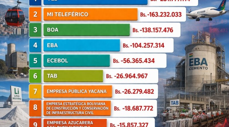 Bolivia: ranking de las 10 empresas públicas más deficitarias del 2025