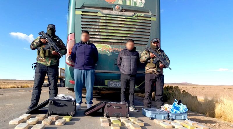 Bus de servicio publico transportaba 30 paquetes de pasta base de cocaina en la ruta Oruro-Potosi