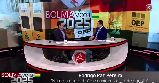 Dijo : “Yo creo que no”, así respondió el candidato Rodrigo Paz al ser consultado sobre si se llevarían adelante las elecciones del 17 de agosto. Paz acusa a Evo Morales, Andrónico Rodríguez y Luis Arce de tomar acciones que podrían afectar el normal desarrollo de los próximos comicios.