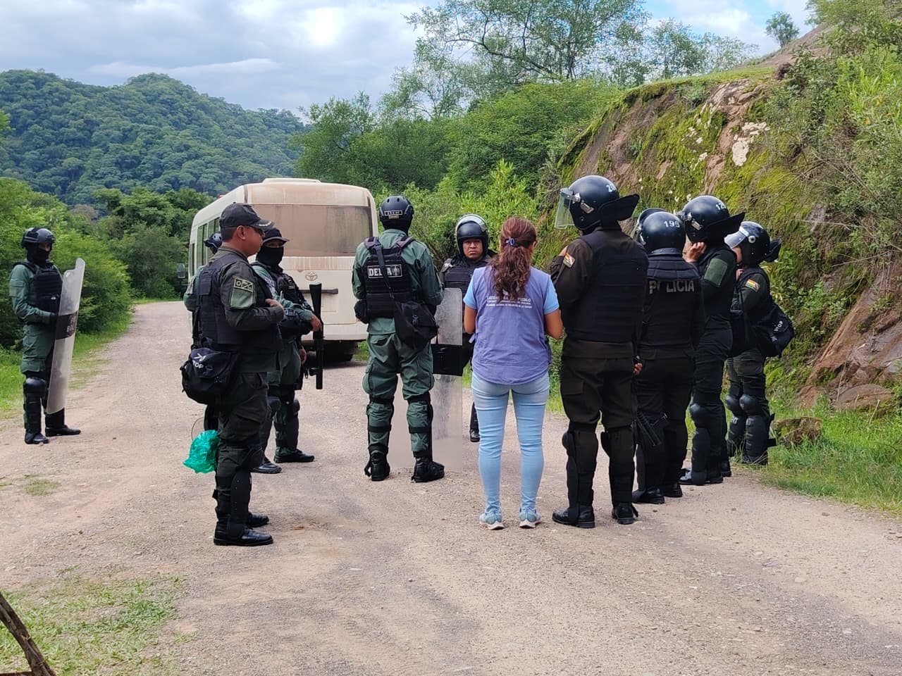 La Delegada Defensorial Departamental de Tarija, Cecilia Bolívar, informó que la presencia institucional responde a instrucciones directas del Defensor del Pueblo, con el objetivo de precautelar los derechos humanos de los defensores ambientales y de las personas que ejercen su derecho a la protesta pacífica.