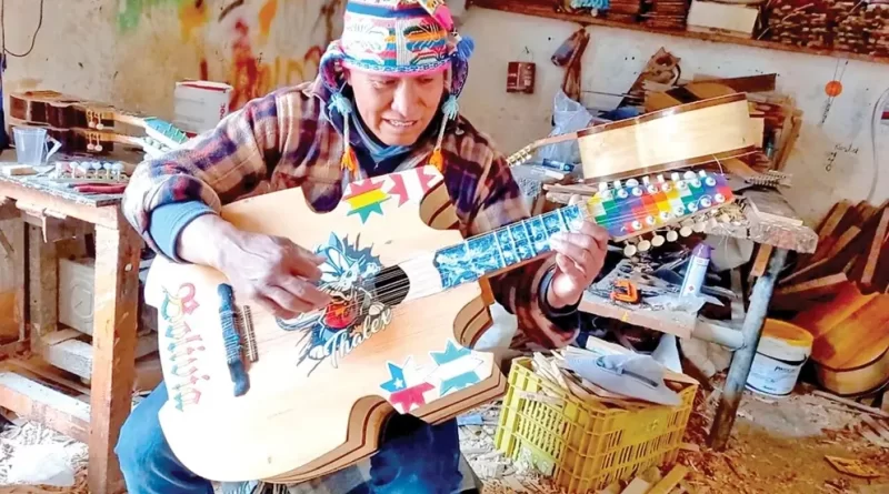 A sus diez años contruyó su primer instrumento. “Lo vendí a treinta bolivianos en una feria en Llallagua, era un charango con un modelo diferente aquella vez, eso les gustó a la gente”. Hasta aquel momento solo había visto a su papá tallar y construir qhonqotas y charangos. “Aún tenía dificultades en hacer igualar los trastes”, recuerda.