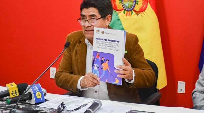 “La combinación de los factores climatológicos está afectando con infecciones respiratorias a nuestras niñas y niños, por esta razón, el Ministerio de Educación ha emitido un instructivo a los directores departamentales, directores distritales y directores de unidades educativas para aplicar los protocolos de bioseguridad y prevenir Infecciones Respiratorias Agudas”, explicó el ministro de Educación, Omar Veliz, en conferencia de prensa.