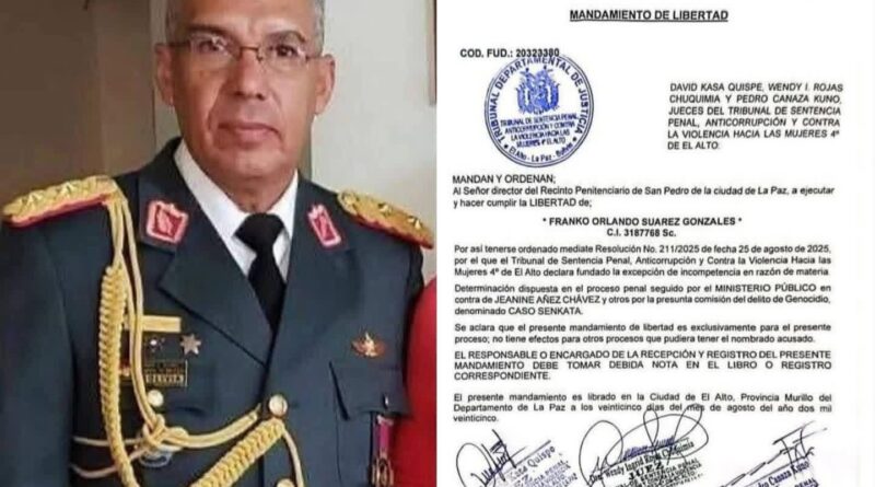 Luego de **4 años, 5 meses y 8 días de reclusión**, el **General Franko Orlando Suárez Gonzales** recuperó su libertad tras la nulidad del proceso militar en su contra.