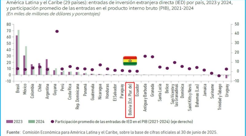 En el 2024, Bolivia solo recibió el 0,1% de la inversión extranjera directa de la región