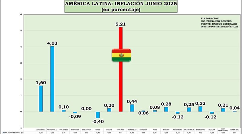 Junio 2025: Bolivia tuvo la inflación más alta de toda américa latina
