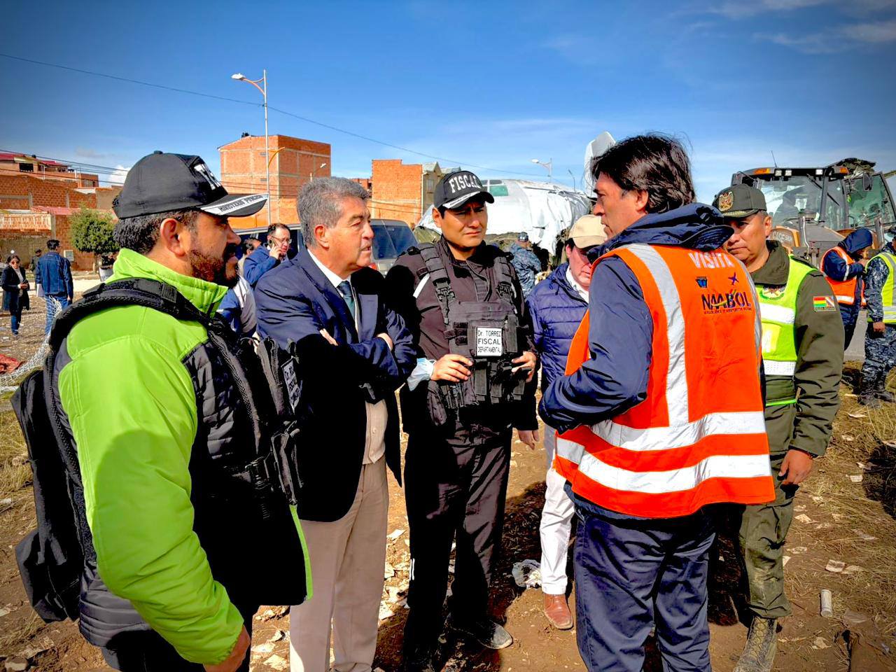 El ministro de Obras Públicas, Mauricio Zamora, por instrucción del Presidente Rodrigo Paz, se suma al trabajo que desarrollan de forma coordinada los ministerios de Defensa y Gobierno, junto al Banco Central, la Policía Boliviana, Bomberos y los distintos organismos de rescate, tras el accidente de una aeronave de la Fuerza Aérea en el aeropuerto de El Alto.