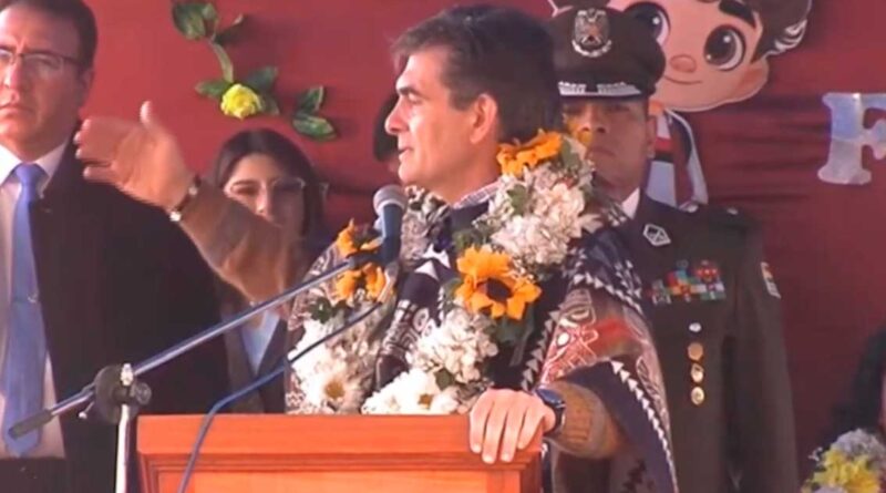 El presidente Rodrigo Paz realizó este lunes la inauguración del año escolar, con un acto en Copacabana, donde anunció su intención de conectar internet en escuelas alejadas del área rural mediante dispositivos similares a antenas.