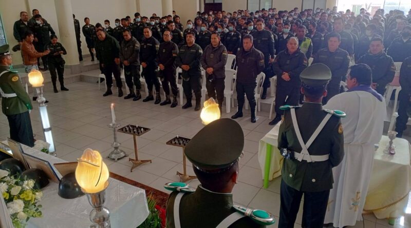 Policía de Tarija celebró una misa y velatorio simbólico en memoria de los funcionarios policiales caídos en el cumplimiento de su deber
