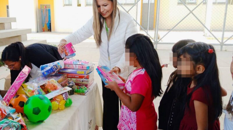 En vísperas del Día del Niño, la Fiscal Departamental de Tarija, Sandra Gutiérrez, visitó la Unidad Educativa Los Laureles, ubicada en el barrio del mismo nombre, donde entregó más de 100 regalos a los niños y niñas del establecimiento, en el marco de las actividades solidarias que el Ministerio Público organizó a nivel nacional en homenaje a las niñas y niños. Durante el acto, la autoridad expresó el compromiso institucional de seguir fortaleciendo las acciones y políticas de prevención y protección de los derechos de la niñez tarijeña y destacó la importancia de trabajar de forma conjunta para erradicar todo tipo de violencia contra los más pequeños.