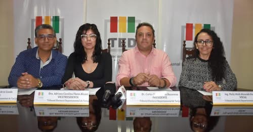 En conferencia de prensa, este lunes 29 de diciembre de 2025, la Sala Plena del Tribunal Electoral Departamental (TED) de Tarija presentó a su nueva directiva.