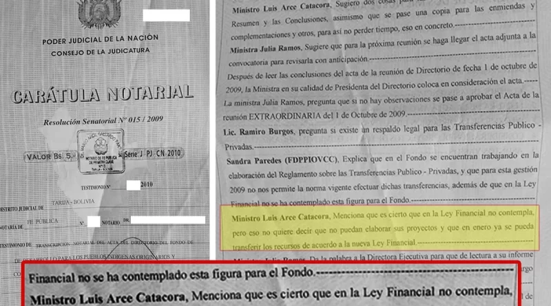 Según el acta de esa reunión de directorio, realizada en Tarija, cuando el Fondo recién había iniciado operaciones, surgieron dudas sobre si la normativa permitía depositar recursos estatales en cuentas de representantes sociales. El funcionario Ramiro Burgos preguntó expresamente si existía “respaldo legal para las transferencias público-privadas”.